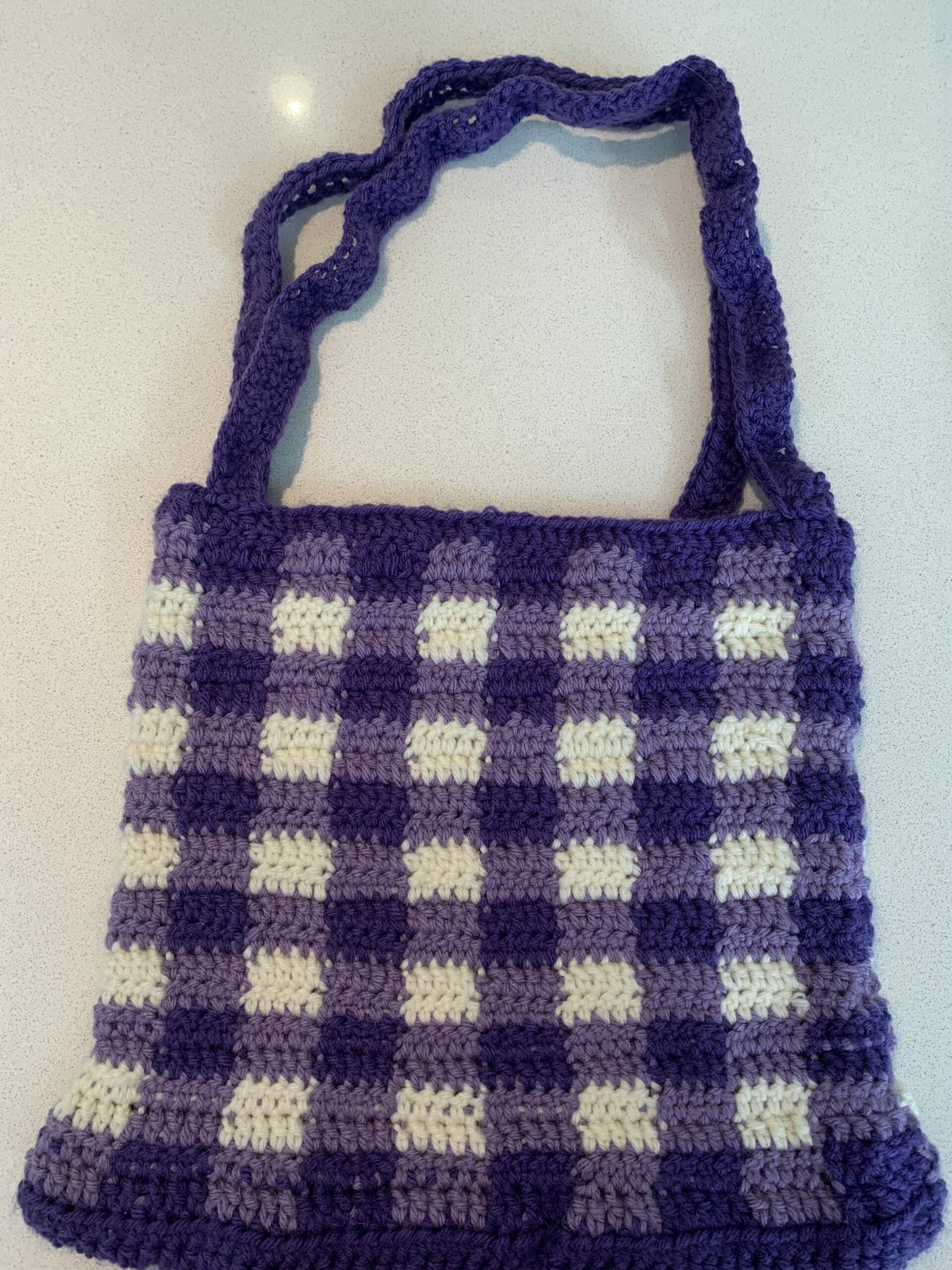 Ta da!! I am so happy with how the bag turned out, although it is a bit smaller than I though it would be. I think I will definitely try this pattern out again, and the nice thing is that I could try out so many different colour combinations! I love the gingham effect, and I think it is a great result for my first ever tote bag.